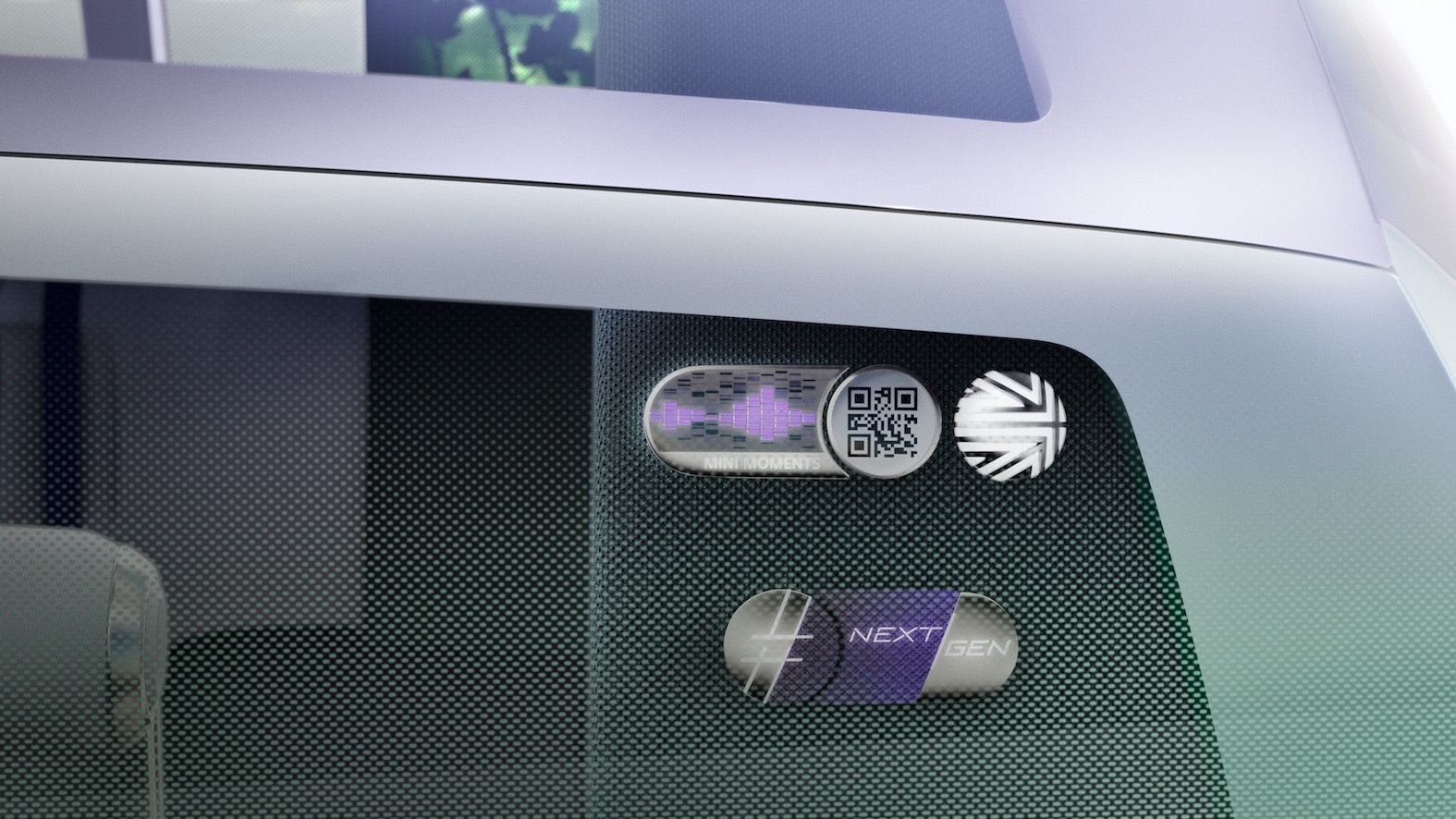В задней стойке с водительской стороны расположилось место для сувениров из поездок. Как и положено, они хранятся под стеклом, напоминая о местах и событиях, как раньше это делали наклейки и значки. Один из сувениров посвящен конференции #NEXTGen, на которой пройдет премьера MINI Vision Urbanaut. На другом нанесен QR-код, который ведет на сайт MINI.com. Так дизайн автомобиля символически объединил аналоговый и цифровой миры.